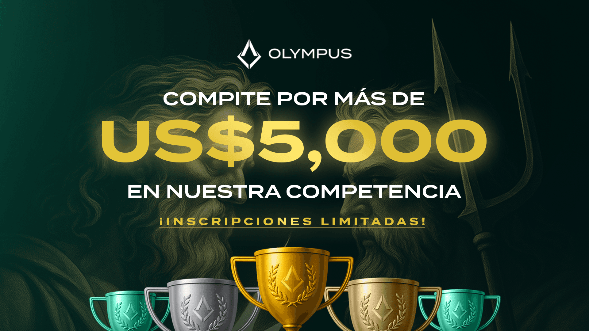 Operar en los mercados financieros conlleva un alto nivel de riesgo y puede no ser adecuado para todos los inversionistas. Antes de participar en cualquier tipo de trading, debes considerar cuidadosamente tus objetivos, nivel de experiencia y tolerancia al riesgo. Nunca arriesgues más de lo que estás dispuesto a perder. Olympus no es una entidad financiera ni ofrece asesoramiento de inversión. Toda la información proporcionada en esta plataforma es solo con fines educativos e informativos. El rendimiento pasado no garantiza resultados futuros. Trading simulado: Todos los challenges realizados en Olympus se desarrollan en un entorno de trading simulado. Esto significa que no se opera con dinero real ni en mercados en vivo. Los resultados obtenidos en cuentas simuladas no representan necesariamente resultados que se puedan alcanzar en condiciones reales de mercado. El rendimiento simulado puede diferir significativamente de la operativa en vivo debido a factores como la gestión emocional, el deslizamiento (slippage), la ejecución de órdenes y la volatilidad. Participar en estos retos no garantiza futuros resultados en cuentas reales.